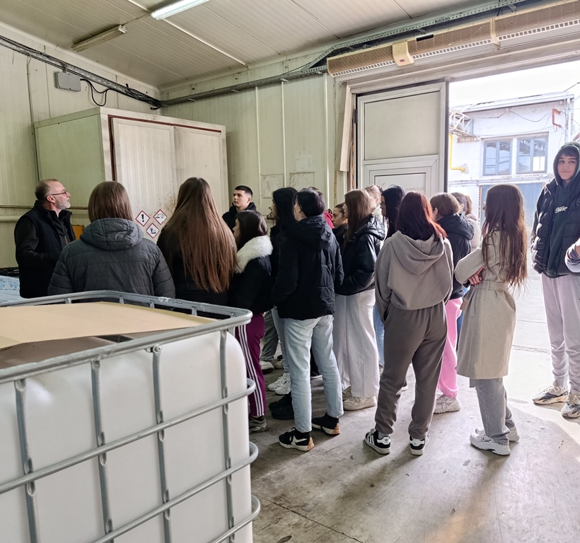 Ученици одељења другог разреда, 2-8 ,образовног профила прехрамбено-биотехнолошки техничар, посетили су дана 21.10.2025. хемијску индустрију „Панонија“ у Панчеву, при чему су обишли производни погон, те у оквиру предмета технологија воде упознали су се поступком омекшавања воде и поступком реверзне осмозе.
